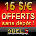 Duel5, casino en ligne offrant nombreux jeux de casino Flash : machines à sous, vidéos Poker... Bonus de 300% jusqu'à 1800€. Programme VIP. Service client.